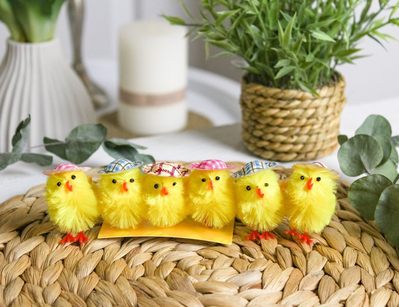 Набор декоративных украшений СОЛНЕЧНЫЕ ЦЫПЛЯТА в кепках, 5 см, 6 шт.