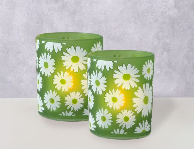 Набор декоративных подсвечников МАРГАРИТКИ: ПОЛЕ, стекло, 9-11 см, 2 шт.