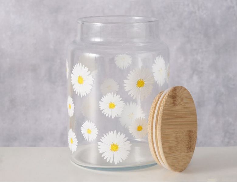 Ёмкость для хранения РОМАШКИ, стекло, силикон, 14 см