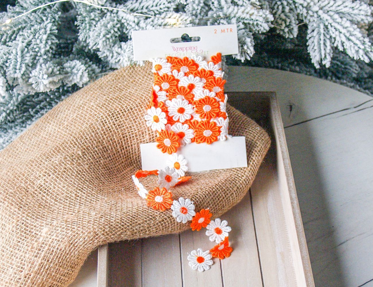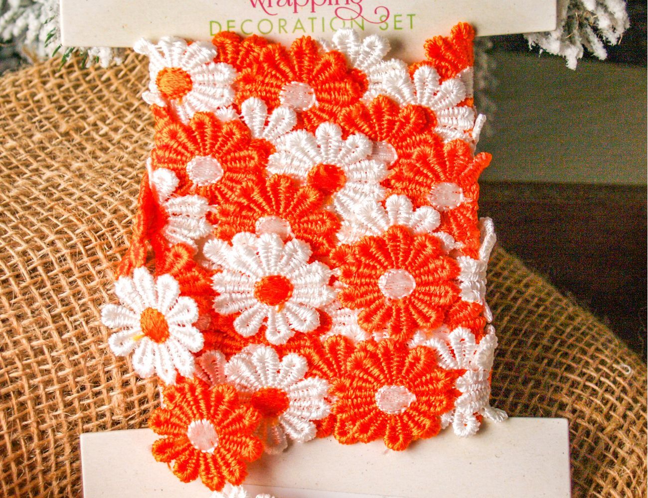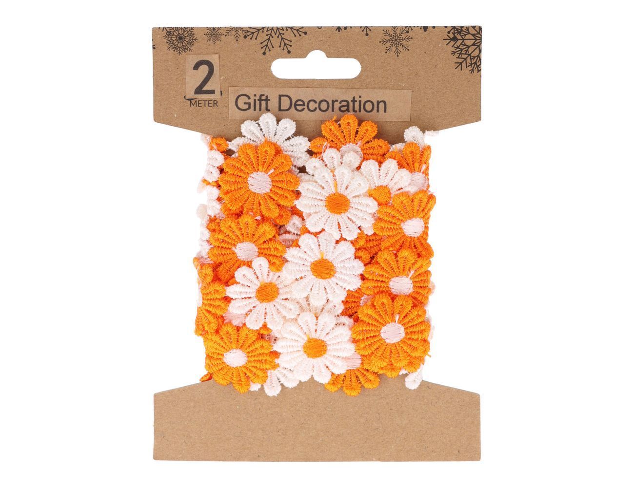 Декоративная лента ВЕСЁЛЫЕ МАРГАРИТКИ, текстиль, оранжевая, 200х5 см