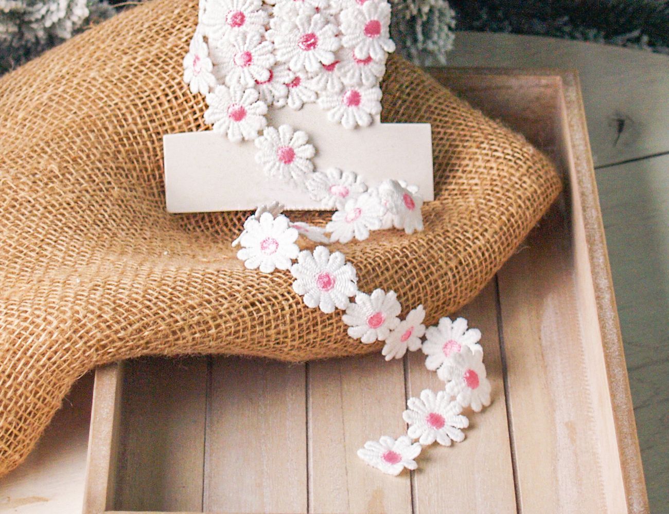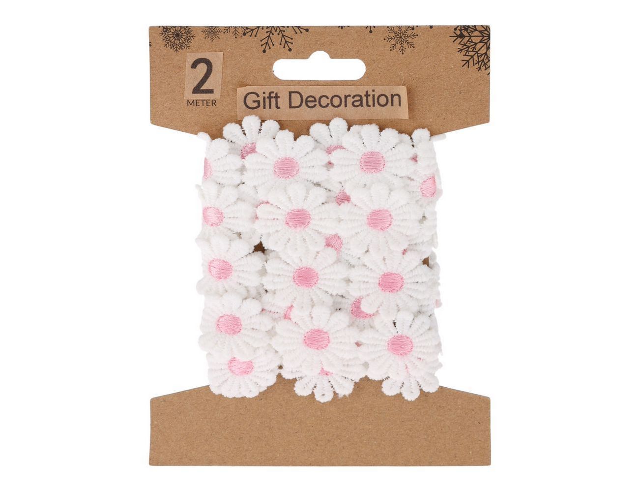 Декоративная лента СОЛНЕЧНЫЕ МАРГАРИТКИ, текстиль, розовая, 200х5 см