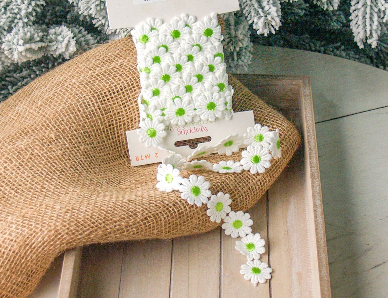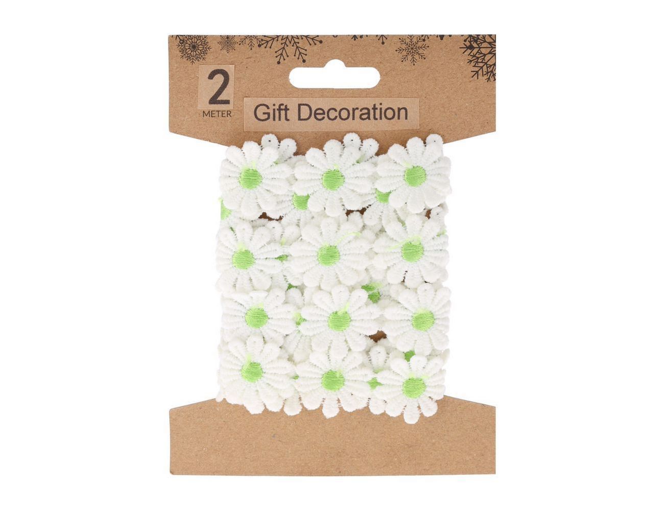 Декоративная лента СОЛНЕЧНЫЕ МАРГАРИТКИ, текстиль, зелёная, 200х5 см