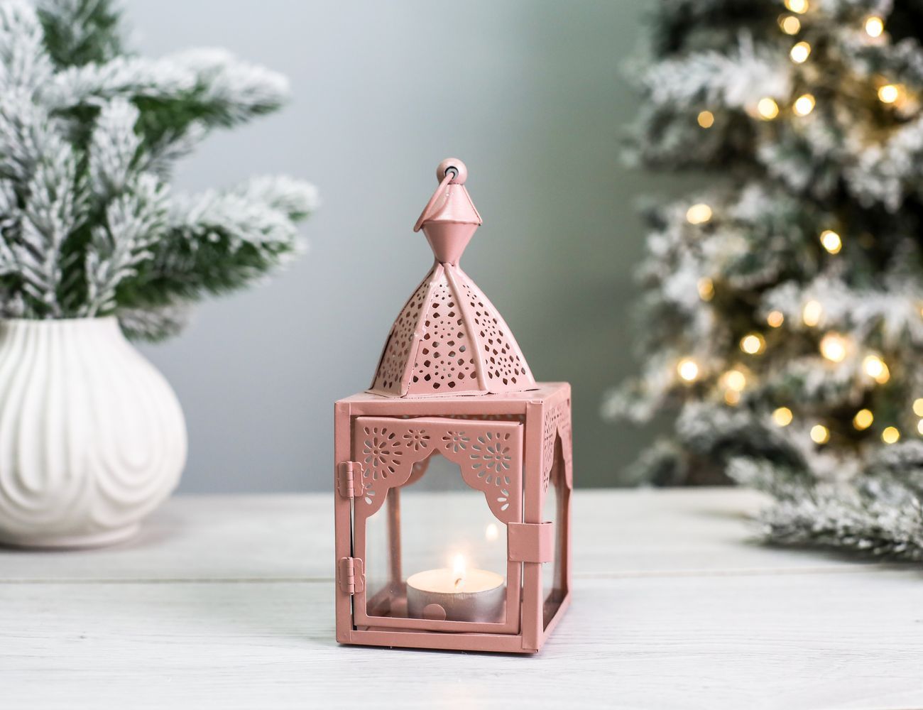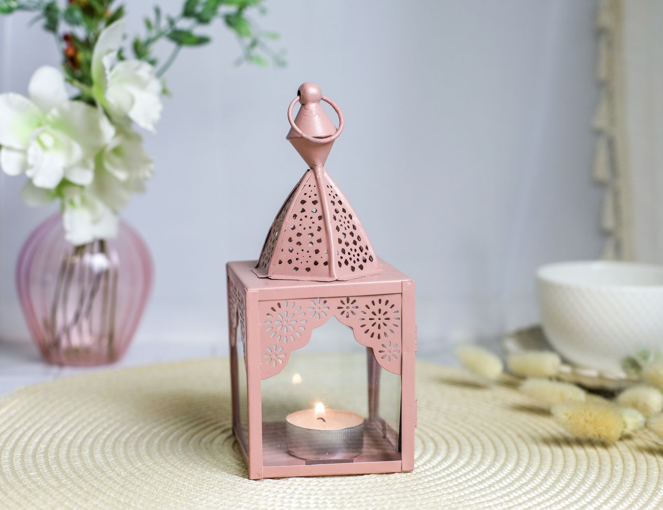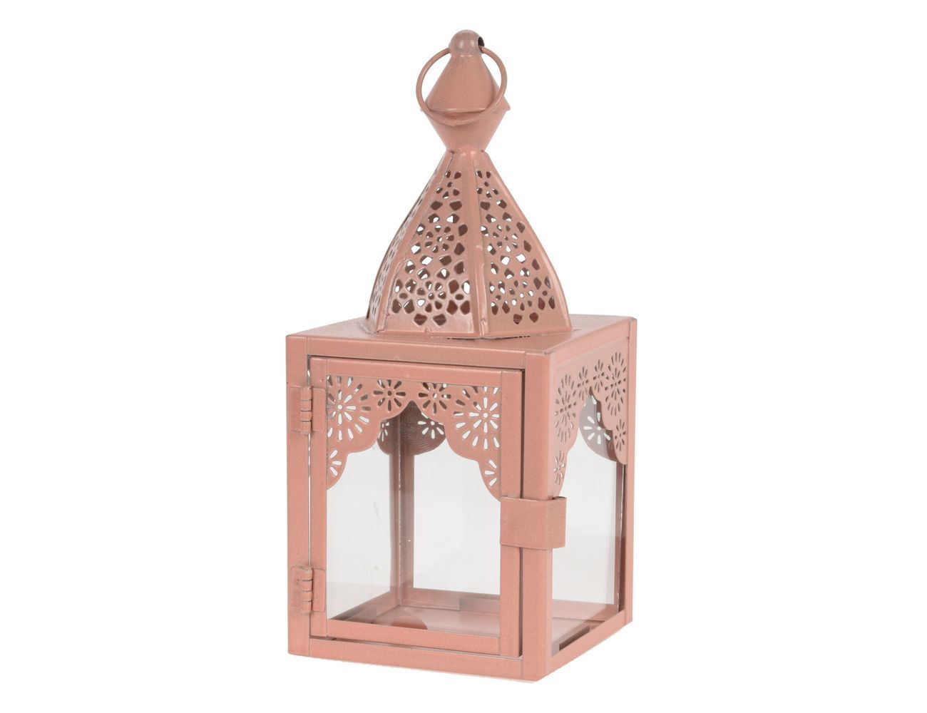Декоративный подсвечник-фонарь МАГРИБ, металл, стекло, розовый, 17 см