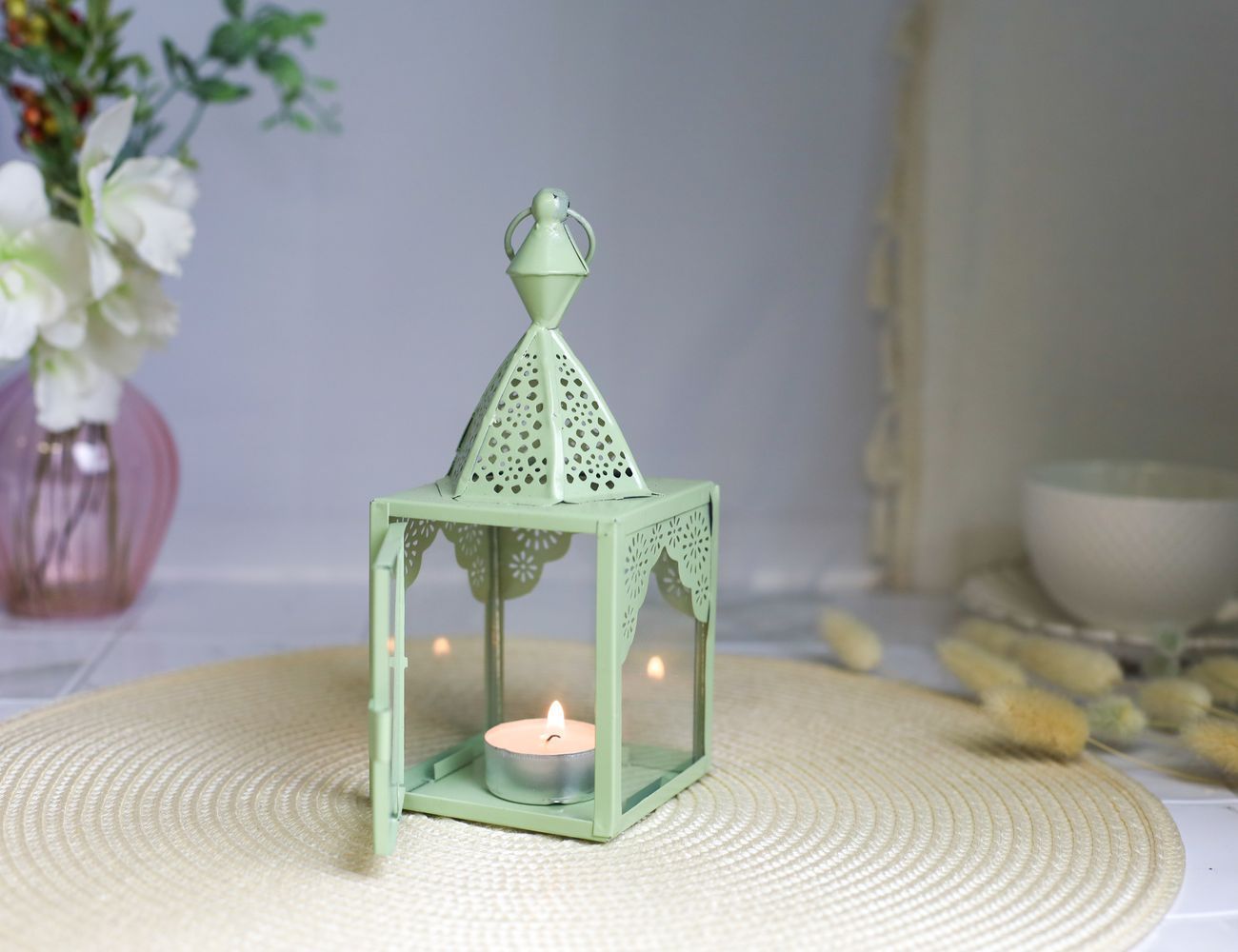Декоративный подсвечник-фонарь МАГРИБ, металл, стекло, зелёный,...