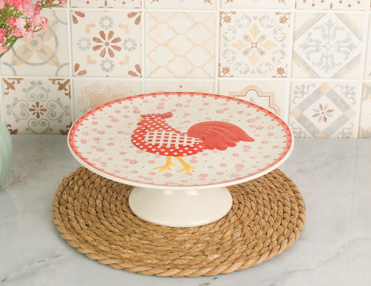 Подставка для торта ПОДАРОК ПЕТУШКА, керамика, 25 см