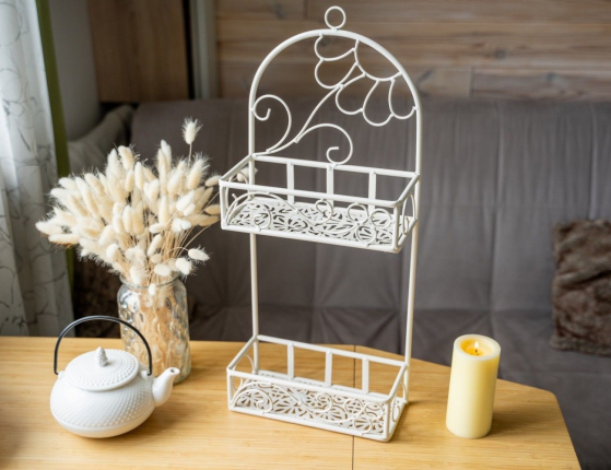 Настенная этажерка для цветов и растений СЕСИЛЬ, металл, белая, 11x26x61 см