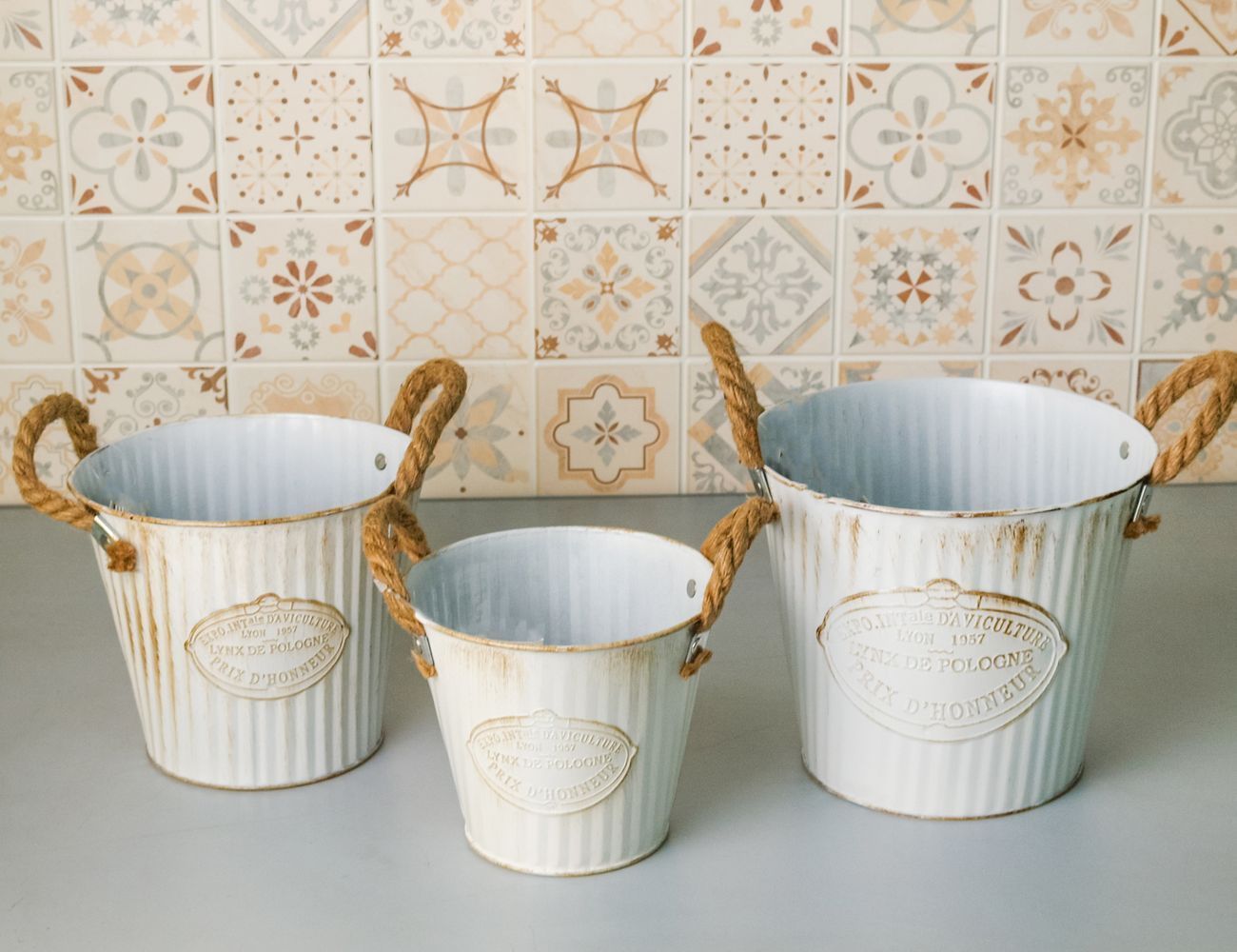 Набор кашпо БОННЬЁ, цинк, белый, 3 шт., 15-20 см
