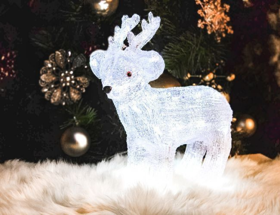 Светящаяся фигура БЕЛЫЙ ОЛЕНЁНОК, акрил, 32 холодных белых LED-огня, 31 см, уличный