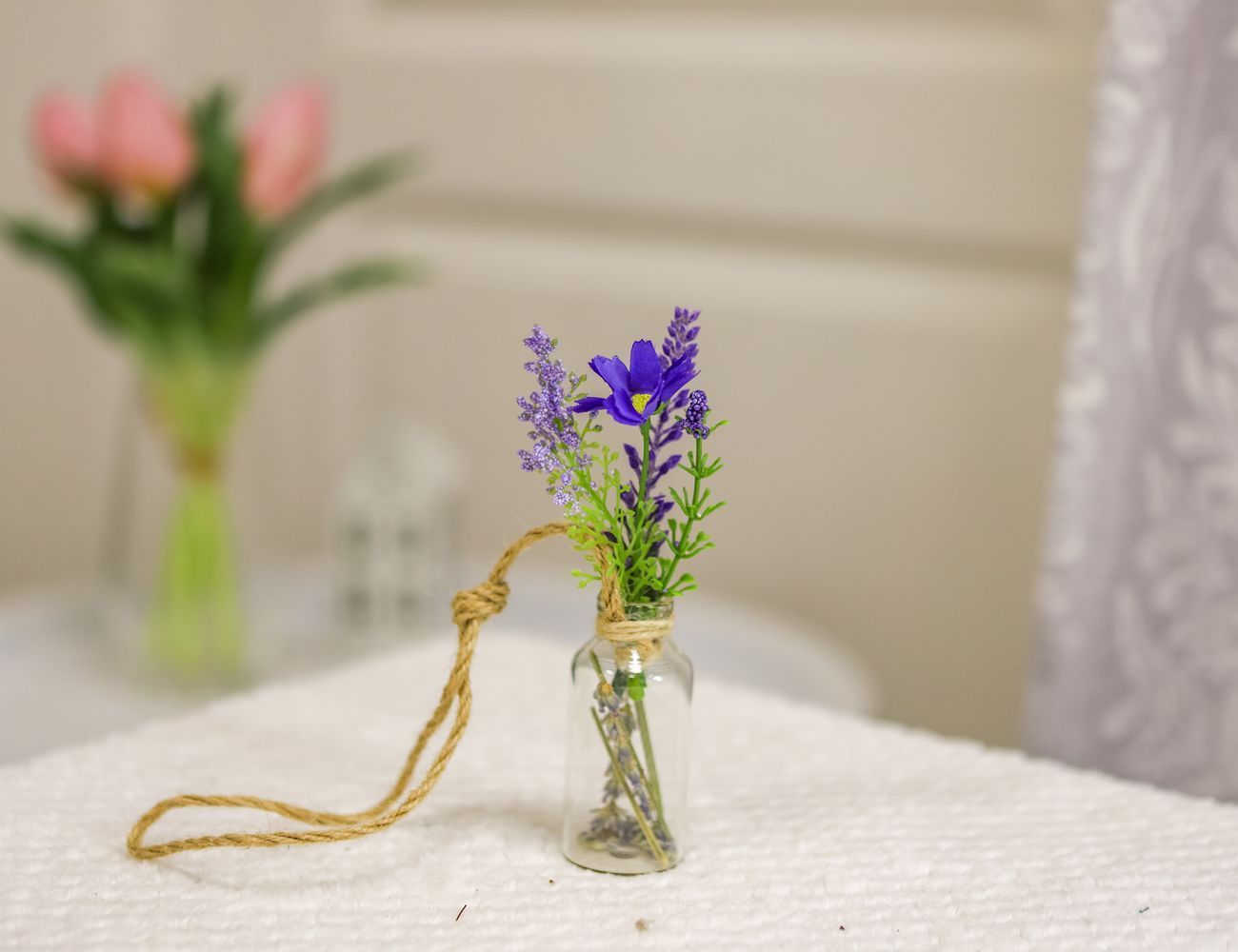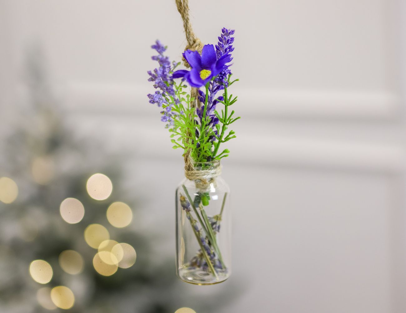 Подвесное украшение БУКЕТ В БУТЫЛОЧКЕ, стекло, искусственные цветы, 3x3x18 см, 2 вида