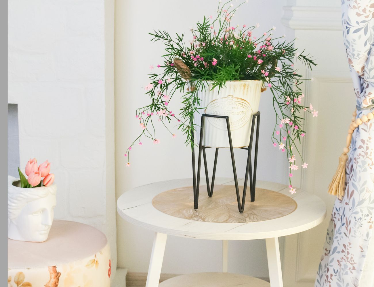Элегантная, стильная поставка подчеркнёт красоту кашпо со вьющимся растением, не отвлекая на себя внимание. А если взять несколько таких подставок разной высоты - можно обустроить очень привлекательный мини-садик!