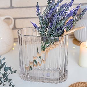 Строгие и стильные стеклянные вазы цвета росы на листве расчерчены ровными линиями вдоль, по диагонали и крест- накрест. Эти вазы могут быть самостоятельным предметом декора, а также подойдут для небольших букетов, одного цветка или веточки.